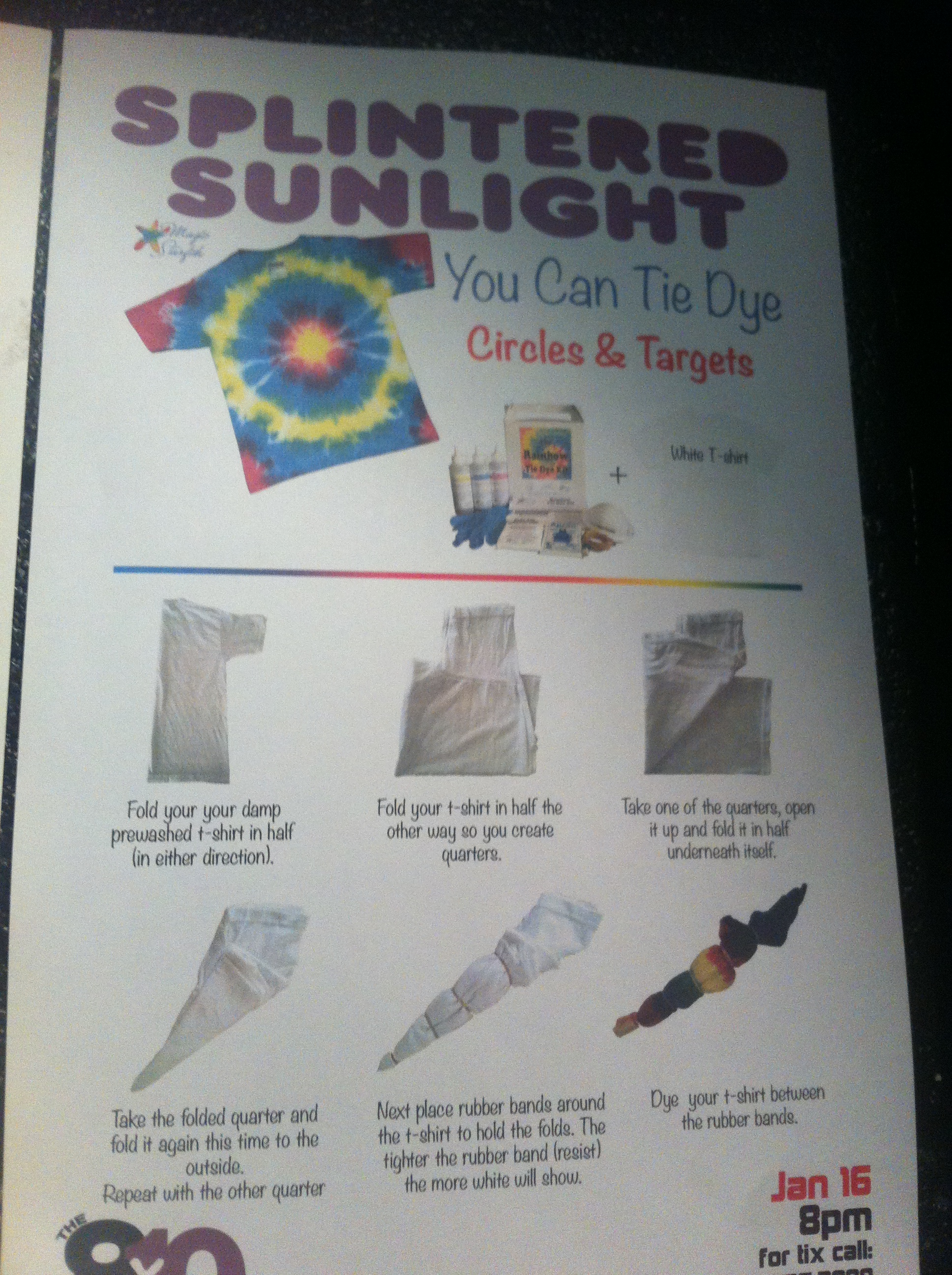 I know this post is getting a little long, but I just had to show you two other fun things from the first concert at the 8×10. First, a band poster that teaches you how to tie dye! 🙂 (Of course, Kristin wants to go see them in concert!)