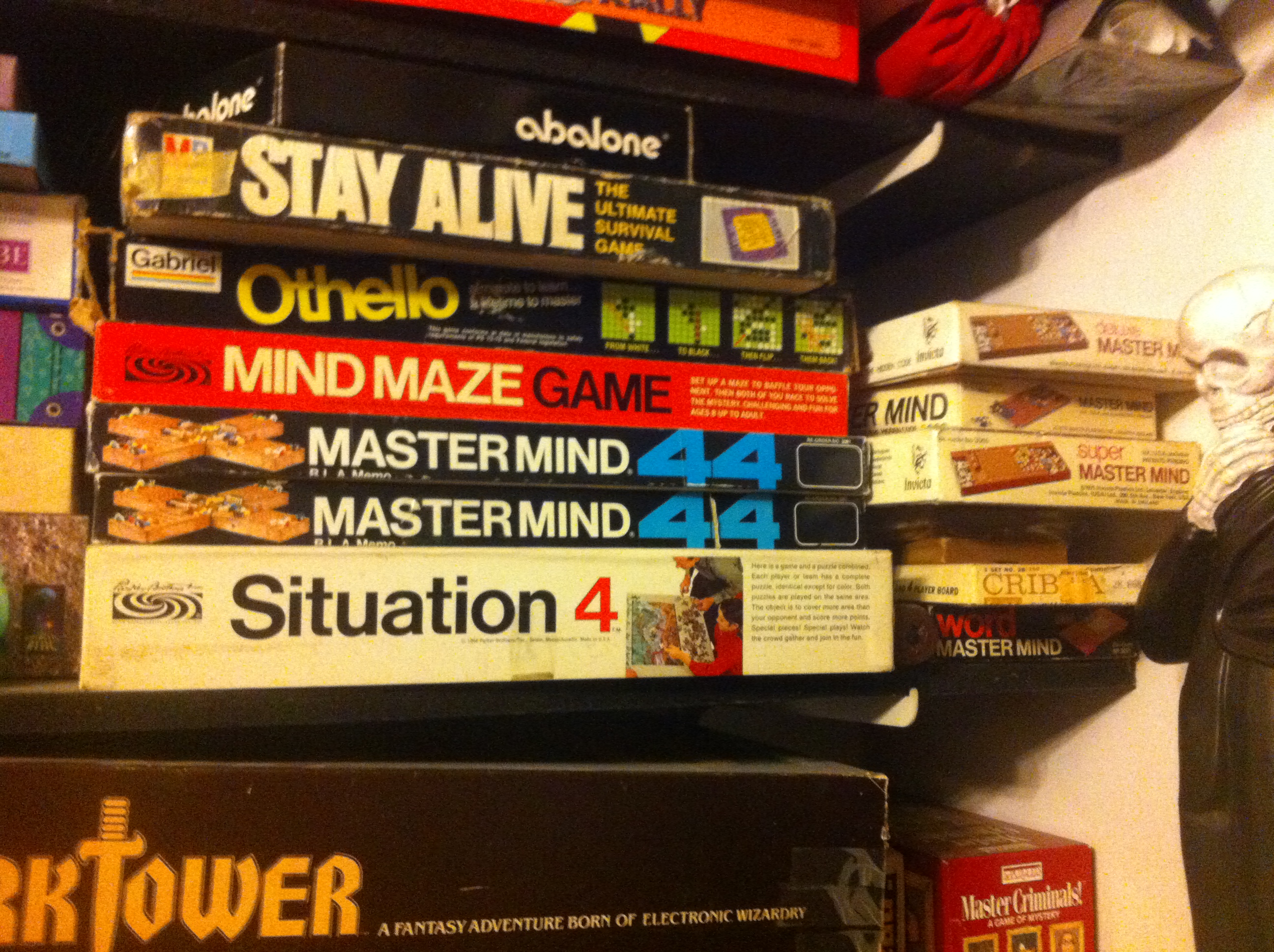 So many different Masterminds!  I played a lot of that myself as a kid.  And I’m guessing that Word Mastermind is like a game we played on napkins at restaurants where one person thinks of a word and the other has to guess only real words and gets markings for correct letters and correct orientation.  Othello and Stay Alive were also heavily played in my childhood.  Which did you play?
